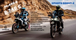 CFMOTO 800MT-X on matkamootorratas, mis sobib nii asfaltteele kui maastikule. Võimas ja töökindel 799 cm³ kahesilindriline bensiinimootor pakub 86 Nm väändemomenti, tagades sujuva kiiruse ja turvalise möödasõidu. Kolm sõidurežiimi (standard, rain, off-road) võimaldavad kohanduda erinevate teeoludega.